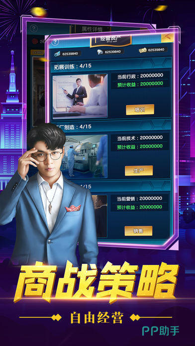 主打草根逆袭路径,强调资产积累与社会声望双轨成长。玩家可通过购置地产、投资产业、提升个人影响力等方式扩大财富基数,同时解锁多元职业身份(如地产商、投资人、连锁店主等),每条路线均有独立成长曲线与专属剧情节点。