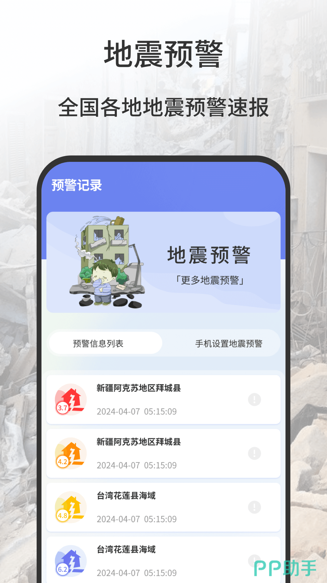 1、《手机地震预警助手》