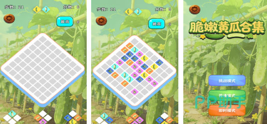 以三消作为基础,会有满满的主题化创新,会融入拍黄瓜以及拌黄瓜等日常的消除场景。消除图标围绕果蔬设计。随机刷新的皇冠图标,让玩家在刷新时也拥有了几分惊喜。游戏会分成挑战,普通,休闲,还有三种不一样的模式,会满足不同玩家的游玩需求。休闲模式可以随意的玩耍,挑战模式就有步数,还有时间的限制,在滑动操作时手感比较流畅,消除的连锁反馈很清脆。