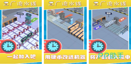 独创“动态故障修复”解谜机制,将流水线运行状态实时可视化。玩家需在产线持续运转中识别异常节点(如堵塞、错位、信号中断),通过点击、滑动或旋转特定组件完成即时校准。每关设定不同故障组合与响应窗口,强调预判能力、操作精度与系统思维,突破传统静态解谜边界,形成强记忆点的差异化玩法标签。