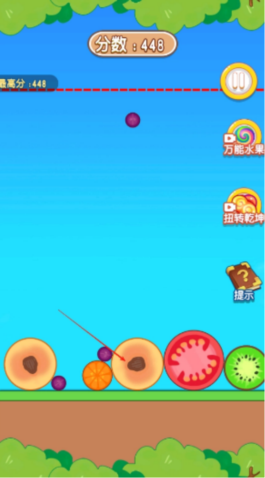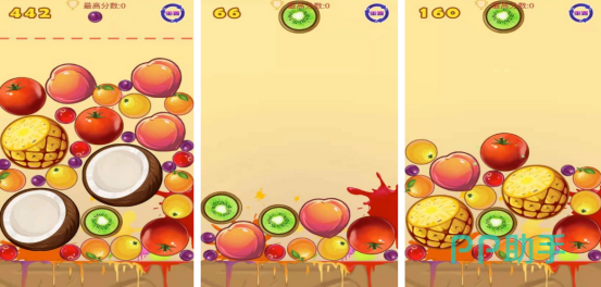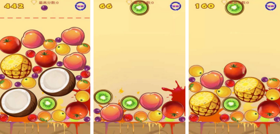融合经典水果合成机制与容器管理策略。玩家通过拖拽操作使同种水果碰撞合并,生成更高级别果实。游戏设有动态警戒线,一旦水果堆叠高度触及该线即判定失败,因此需兼顾空间规划与合成节奏。关卡难度由浅入深,另设独立挑战模式,提升长期可玩性。