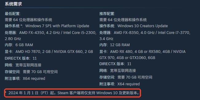 从硬件要求来看,游戏官方推荐配置为:Windows 10或更高版本操作系统、12GB内存、GTX 1060显卡(配备6GB显存)、70GB可用存储空间。当前主流PC设备大多满足上述条件,因此闪退主因往往不在硬件性能不足,而更集中于系统兼容性与网络验证环节——尤其是Windows 7/8等旧版系统缺乏对现代DRM机制的完整支持,容易导致验证失败并触发强制退出。