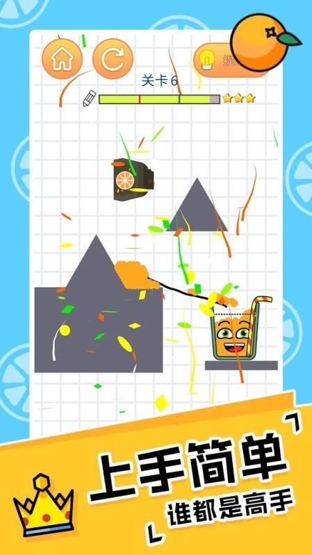 本作定位为单机物理向解密益智手游。玩家需在屏幕上绘制引导线,利用重力与流体特性,将果汁精准导入指定玻璃杯中,并使其液面达到预设刻度线方可通关。关卡不限尝试次数,且多数关卡存在多种可行路径。游戏搭载真实物理引擎,果汁流动受线条弧度、障碍物位置及倾斜角度影响;中后期逐步引入旋转装置、移动平台等动态机关,强化解谜维度。全程无需联网,适配通勤、候车等碎片化使用场景。