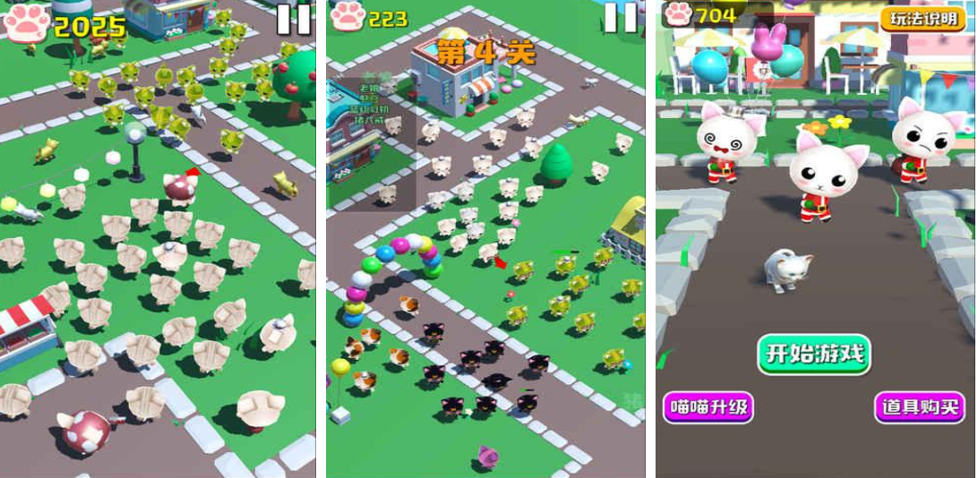 本作采用“吞噬成长”核心机制,打造高密度猫咪集群对战体验。玩家操控初始小猫,在开放地图中主动接触并融合其他个体,实现体型扩张与能力升级。道具系统涵盖速度强化、护盾加成、分裂增殖等多种类型,策略维度丰富。满屏跃动的猫猫角色构成极具辨识度的视觉奇观,契合“拥挤”主题设定。