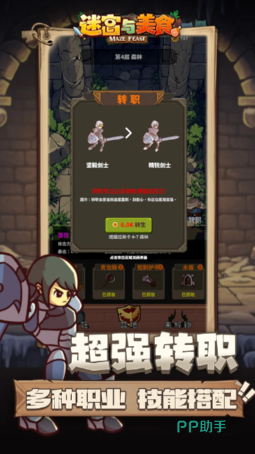 融合Roguelike式多层迷宫探索与模拟经营玩法。玩家需逐层深入未知区域,识别各类魔物弱点制定战术;同时经营专属餐厅,研发菜谱、调配食材、定价销售,获取金币用于角色成长与装备升级。挂机机制完善,离线期间亦可积累收益。