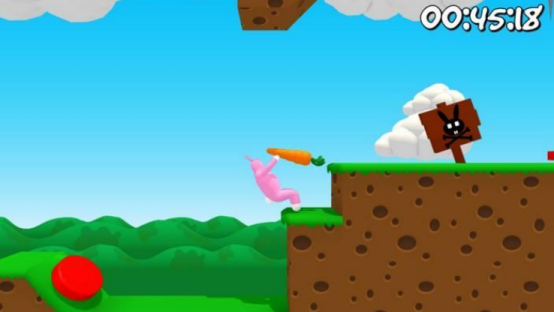 游戏拥有相当别致的物理引擎,通过翻滚跳跃的方式来进入洞中,不断的翻滚来寻找到胡萝卜,整个过程会出现很多意外,也会出现很多危险,两位玩家需要互相配合,这样才能够成功通关,要躲避陷阱,寻找胡萝卜将其带入虫洞当中。