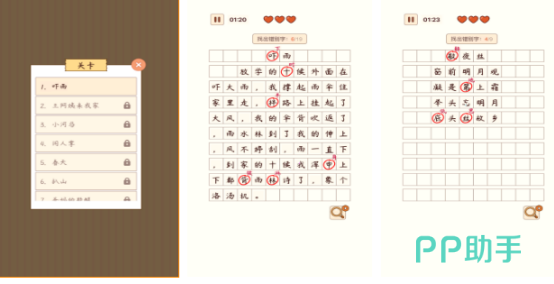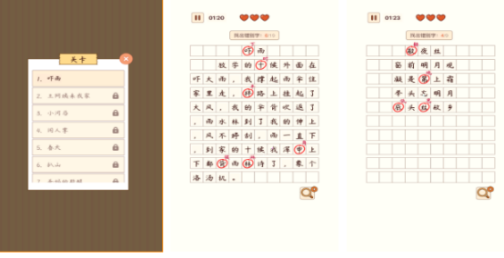 采用模块化关卡架构,总计设置超100道递进式题目,由“人、口、日”等高频独体字起步,逐步引入合体字、多音字及易混淆形近字组。界面采用极简风格,突出文字主体,辅以层级分明的操作指引,强调对偏旁位置、笔画连接方式及空间关系的精准判断,帮助建立系统性汉字认知框架。
