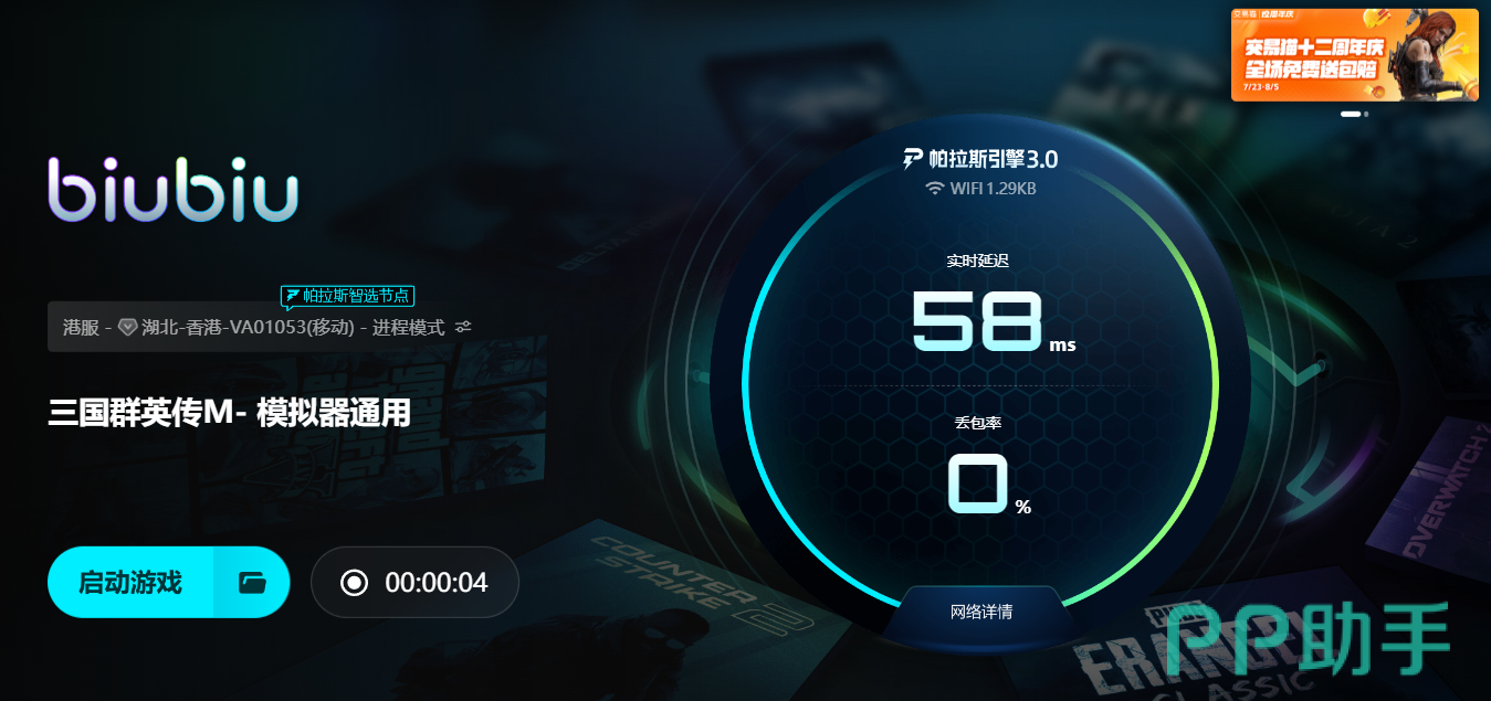本次帕拉斯引擎3.0的调优深度整合了职业电竞选手Aixleft的实战数据集。基于其在高强度对抗中积累的237类网络异常样本,引擎新增了低带宽优先级调度、突发流量平滑缓冲等模块,使加速策略更精准匹配策略游戏的数据特征。为降低体验门槛,新注册用户默认赠送24小时全功能试用期,输入激活码【biubiu不卡顿】可叠加获取72小时高级服务权限,覆盖完整新手引导周期与首场大型战役。