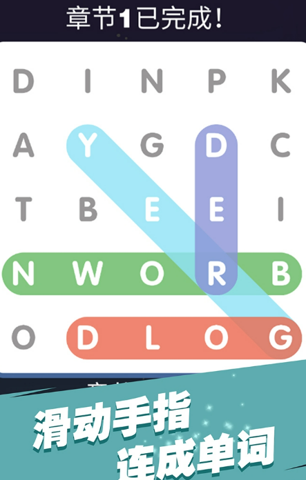 字母连线拼单词,夯实基础不含糊,玩家需要滑动手指,将相邻的字母按顺序连接,拼出正确的单词,关卡按难度循序渐进,一开始可能是比较简洁的三字母那种词,后期会加入略显难度的字母组合和长单词,游戏没有多余的功能,全程围绕单词拼写展开,每拼对一个单词就会播放标准发音,还会显示简单释义,能培养玩家的字母解码能力。