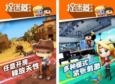 以捉迷藏为主题的游戏,可以让各个年龄段的人仿佛回到了童年时刻,里面的人物全部都是以方块的风格所打造的。分成两个队应当中的以后,你需要根据每一个队伍当中所具备的特点,在规定的时间内完成任务的情况下,就可以在捉迷藏大作战当中取得胜利。主要的特色就是如果自己是躲藏队的话,可以化身为游戏当中的一些部件。