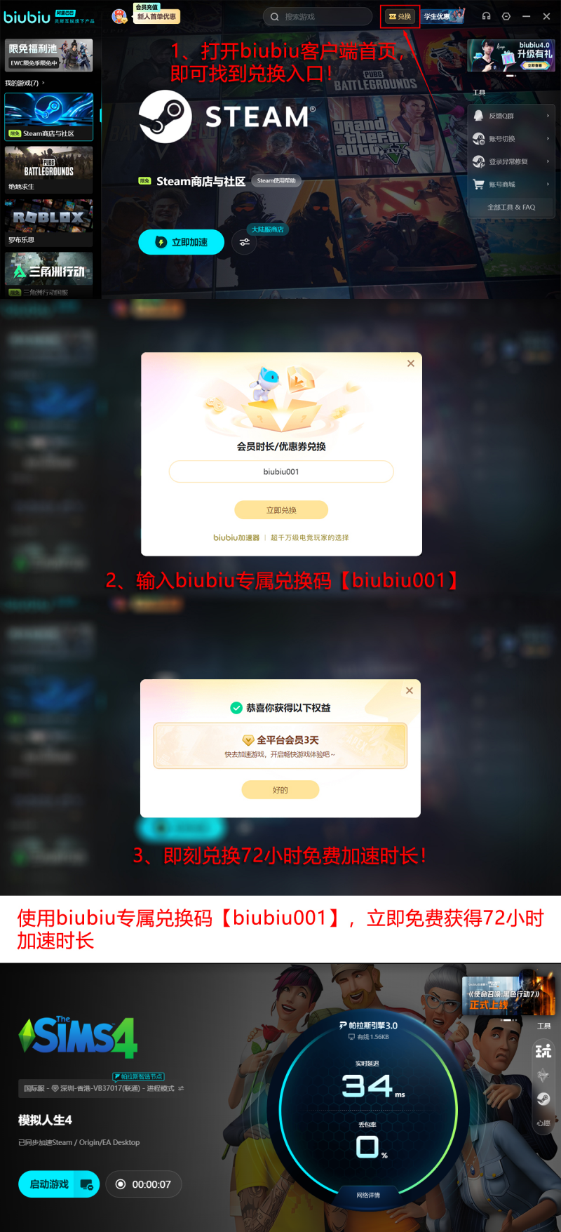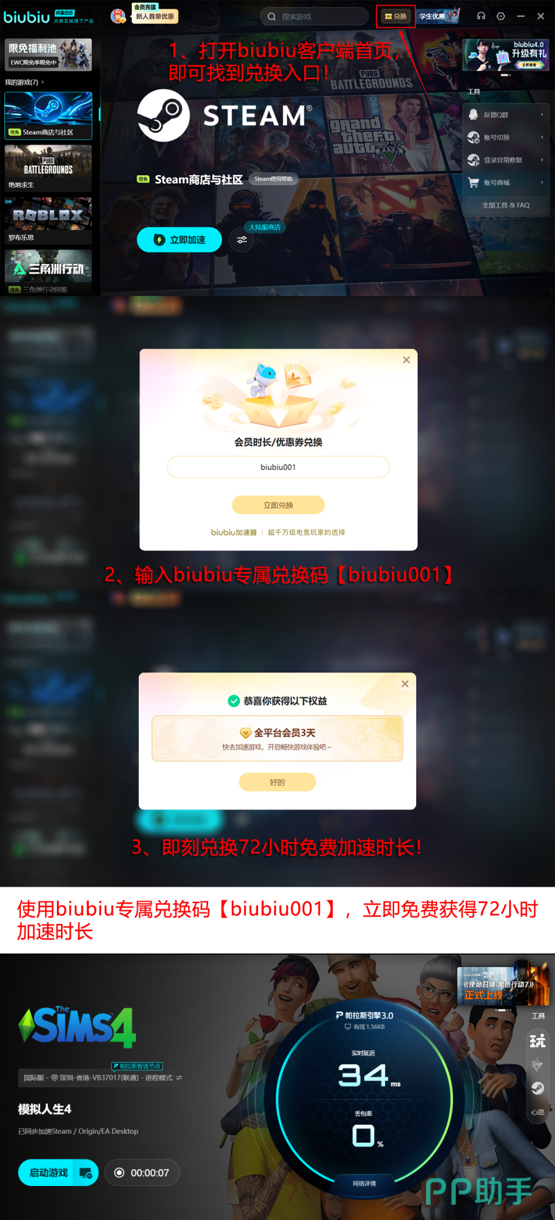 该工具已通过多项严苛稳定性测试,被PERO电子竞技战队指定为官方合作网络支持软件。其底层技术由阿里巴巴灵犀互娱提供研发支撑,与九游、交易猫同属灵犀互娱旗下核心产品矩阵,在游戏网络优化领域具备成熟技术积累与行业公信力。当前新用户注册即可获赠24小时基础加速时长;叠加首次登录礼包与专属兑换码【biubiu001】,总计可享96小时免费加速服务,全程免付费、免捆绑、一键启用。