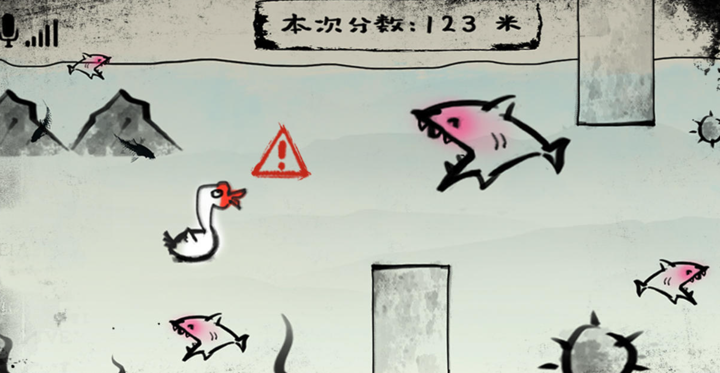 本作是款完全独立运行的声控主题横版冒险手游,主角是个生动可爱的水墨可爱小鸭子,而你的任务就是使用声音去控制小鸭子跳跃前进,考验音调的声控操作机制带来的沉浸感不错,陷阱设定更多带来的闯关节奏也蛮有意思的,无穷无尽的关卡给大家带来的旅程刺激性更强,不断尖叫进行操作的闯关设定也新颖有趣。