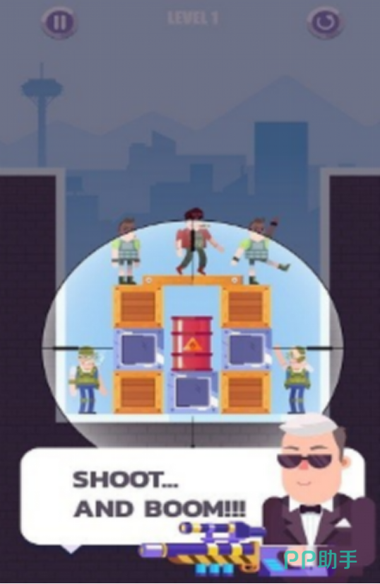 轻量级射击解谜玩法,关卡结构独立且背景设定各异。每关均设置多重障碍逻辑,如追击型敌人、可破坏掩体、动态视野遮挡等,需结合精准射击与策略性走位达成通关目标。操作响应经过优化适配移动端触控特性,兼顾新手引导与进阶技巧成长曲线。