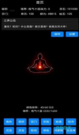 核心玩法聚焦文字驱动型放置体验,全程通过精炼文本推进凡人逆天改命的修真历程。丹药炼制、灵器锻造等关键资源均可通过后台挂机稳定产出,策略重心落在功法搭配、灵根适配与境界突破节奏把控上,适合偏好静思推演的玩家群体。