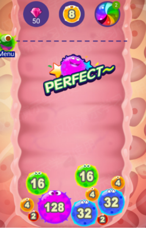 将物理弹道机制与2048合成规则深度融合,方块具备惯性滑动与碰撞反馈特性。关卡呈阶梯式难度递进,需达成指定目标方可解锁后续章节,强化目标导向与长期规划能力。采用高饱和度配色方案与拟人化细菌角色设计,每次合并伴随粒子爆破与音画同步特效,增强操作反馈与视觉激励。