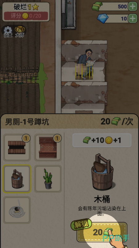 模拟经营类玩法,以单体卫生间为运营主体。玩家需统筹资金投入,逐步升级坐便器、感应水龙头、空气净化系统、无障碍扶手等硬件设施;应对突发状况如堵塞维修、设备老化、客流高峰调度等挑战。通过提升服务评级与顾客满意度,解锁新地图与装修模板,构建可持续盈利的卫生服务生态。
