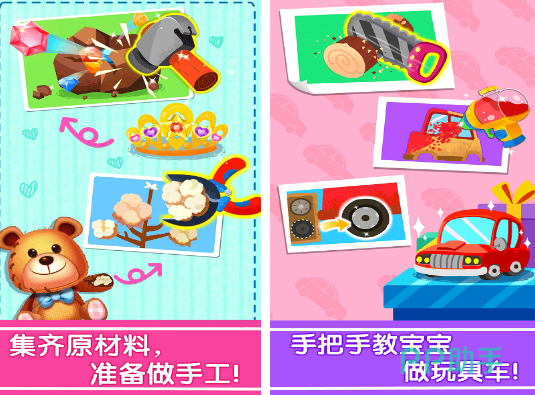 由宝宝巴士研发,聚焦可持续发展理念,引导儿童将日常废旧物品转化为实用手工作品。游戏内置剪纸、串珠、风筝制作等模块,每项任务均配备适龄工具与拟真操作反馈。例如,使用废弃瓶盖制作项链配件,在达成目标后可解锁成就徽章,同步强化资源循环利用的认知基础。