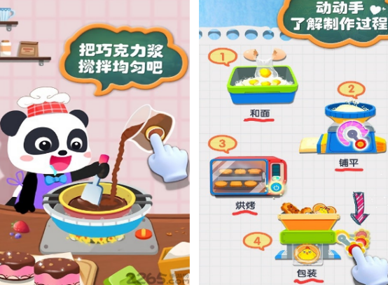 本作还原烘焙与甜点加工全流程,提供巧克力蛋糕、曲奇饼干等多种儿童喜爱的食品类型。玩家需按步骤添加原料、控制火候、装饰成品,过程中穿插食材识别与计量单位启蒙。全部操作采用拖拽+点击式交互,无文字障碍,适配学龄前儿童操作习惯。