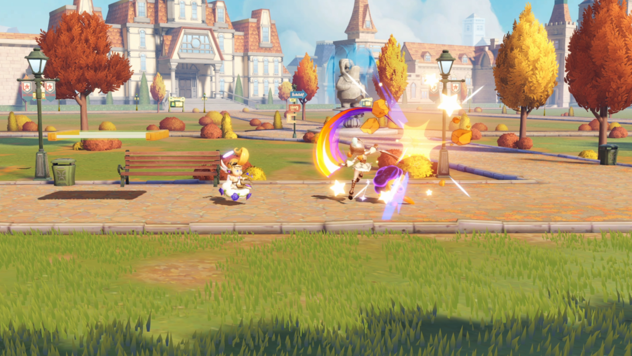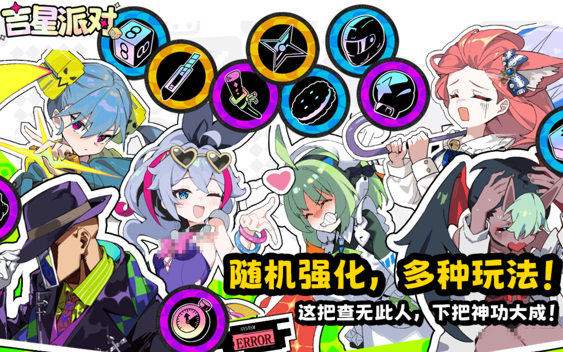 采用无血条设计,通过累积击飞值实现淘汰机制。角色池超二十名,按战斗特性划分为均衡型、突进型等类别,并偶有联动角色限时加入。竞技模式含擂台1v1与四人混战,周末开放专属限时玩法。基础操作门槛低,攻击、跳跃、闪避易于上手;连招系统需一定练习成本。外观系统开放服装与配饰自由搭配。联机上限为八人,内置语音功能支持变声,兼容组队协作与自由乱斗两种模式。