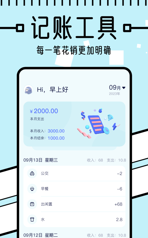 该软件也是主打记账功能的,需要用户们填写每一笔的花费,几乎上每周和每月都会罗列账单里面的各项费用,之后会提供一个比较周密的节省计划,这样用户们就可以省掉一些不必要的开支,从而有一笔存款来过渡危险的时期。