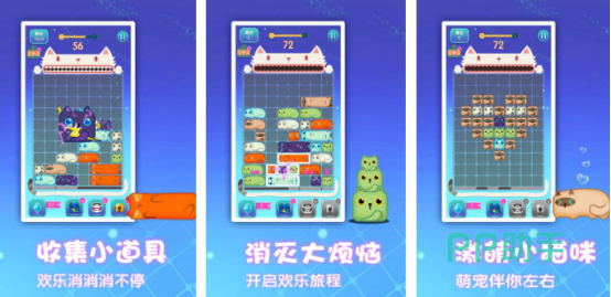 各种不同大小的方块都以q萌的画面所展现,开局后将会从屏幕上方掉落下不同的方块,通过合理左右滑动的方式就可以填满整行,以此而快速消除。遇到难以突破的难关时,也可巧妙使用各种独特的道具,顺利通过高难度的关卡。海量关卡都是以循序渐进的玩法来挑战,在特殊的技能中,只要正确放置的时候也可瞬间消除顶部一整行。