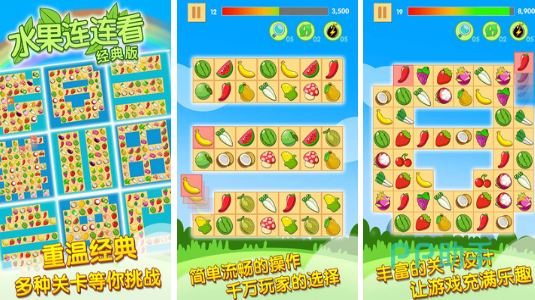 色彩鲜明的视觉设计适配不同玩家群体,采用经典连连看这样的特色规则,提供多元化游戏模式,满足更多玩家的种种需求,根据相应的关卡提示来收集指定元素,最终完成相应目标,限定时间内快速消除全部水果,非常考验玩家的反应速度。独特的视听效果与美术风格,水果图案色彩鲜明,设计清新又唯美,再搭配舒缓的音乐,营造出轻松氛围。
