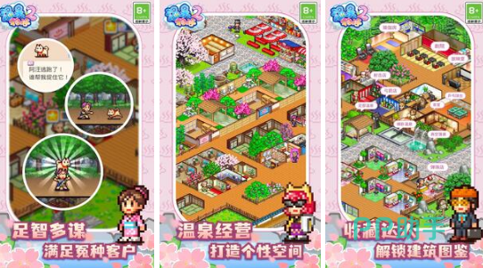对修仙类作品很感兴趣,那么可选择这款以开罗为题材的像素模拟经营手游,成为温泉旅馆的经营者,要完成设施建设,顾客服务,设计相应的景观,来打造并规划适合的策略活动以及相应的元素,所有玩家都能自由设计温泉旅馆的每个角落,从露天温泉到乒乓球台等超过几十种不同设施,根据个人喜好进行摆放。