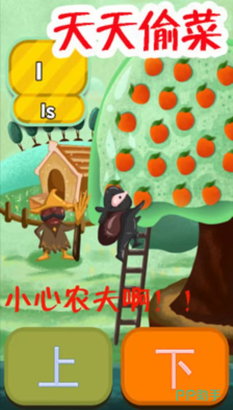 在这里玩家每天都可以体验当一个机智灵活的偷菜贼,和农场主斗智斗勇。只有当农场主背过去的时候,快速带着大布袋偷走他的蔬菜。需要快速在梯子上爬行,被农场主发现就会被他的叫骂声吓跑。点击控制人物上下移动,让玩家感受一把刺激的偷菜经历。