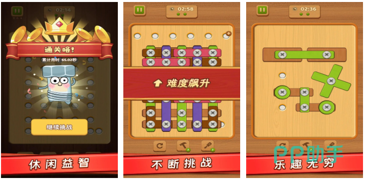这款解谜休闲手游跟螺丝钉这种道具息息相关,有着休闲启智的基础玩法和金属音效,玩法互动性极高又有着挑战性十足的内容,乐趣无穷的解谜逻辑设定也是玩家的最爱,整体关卡颇多需要玩家跟螺丝钉多种多样,金铁交加的互动音效也是这款解谜手游的特色,与众不同的解谜机制让无数解谜高手乐在其中。