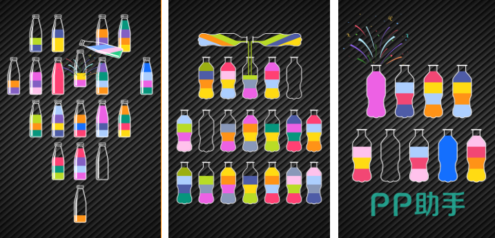 顾名思义本作就是款利用倒水方式进行解谜的神作,解谜过程生动好玩又有着极高的辨识度,每一瓶水都有着各种各样的颜色,你的任务则是将相同颜色的水倒在一起,这样的特殊解谜设定让本作可玩性更高,生动的视觉效果配以灵活操作机制都是亮点,各位解谜高手试着进入本作倒水解谜吧。