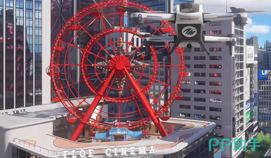 步入影院主入口,可见大型数字展示屏正循环播放多支原创宣传片,内容涵盖世界观设定、异象事件纪实及角色背景短片。影院内部结构完整开放,包含放映厅、休息区、售票处等模块;更值得注意的是,其顶层天台被设计为功能性“飞机坪”,预留了后续任务触发、载具起降或空中视角探索等玩法接口。