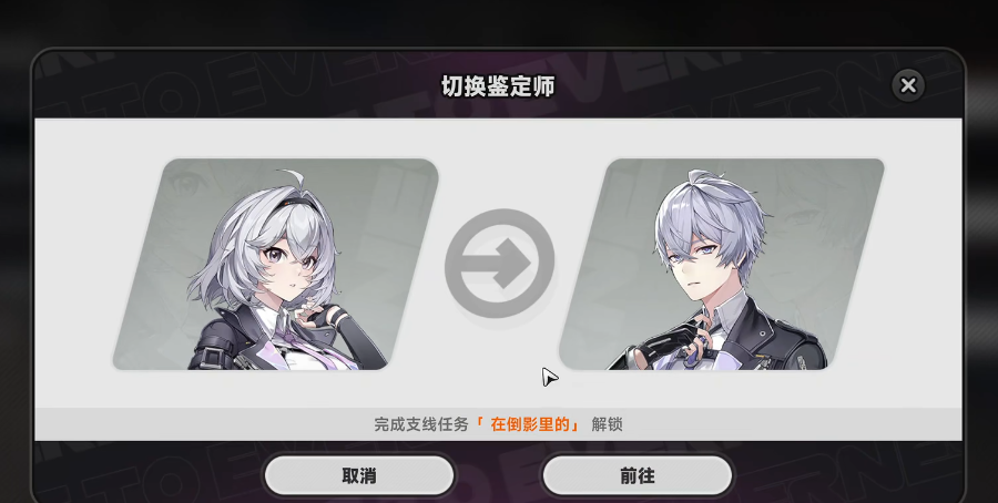 点击该选项后,系统将提示需先完成限时支线任务【在倒影里的】。该任务以沉浸式叙事为核心,引导玩家探索自我认同。任务地点位于半角街内一家特色店铺,店内置有特殊镜面盆器,可映照角色内在状态;最终与店主完成关键对话,即视为性别转换成功。需注意:每次操作后设有24小时冷却期,期间无法重复执行转换。