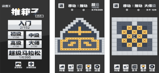 这款黑白版本的推箱子手游作品带来的互动性极高,从入门级到大师级别的推箱子关卡坐等大家解锁,轻轻松松的移动箱子过程也带来很高沉浸感,关卡设定超多并且地图的刻画也是别具一格,箱子数量也会越来越多增加游戏的难度,提示功能也很有用可以轻松助力大家在地图上推箱子。