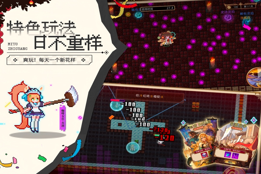 肉鸽+射击+克苏鲁画风=《黎明前20分钟》,上百只克苏鲁魔物让你在这里无限制收集,在线打造你的克苏鲁百科;独特的养成系统让玩家欲罢不能,在线参悟魔法秘籍轻松截取100+技能,有趣好玩的局内技能也可以让你打出自己的专属风格,枪士、魔法师等六种职业玩家可自由选择。
