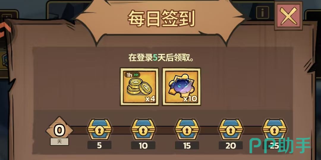同样于通关第1章第10波后开启,每日完成基础操作即可领取钥匙、经验水晶及金币等实用资源。