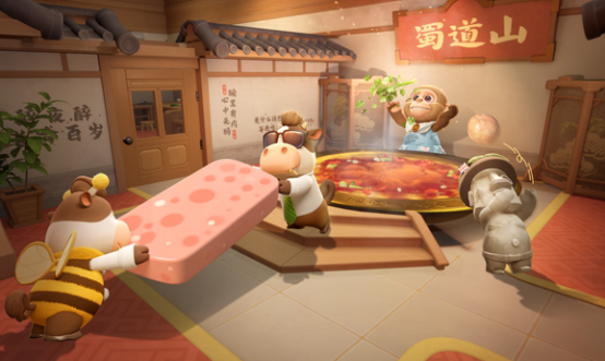 当中在众多游戏模式当中,火锅之王是比较别致的,将四川火锅的种种特色文化都完美的展现,玩家化身成为各种拟人化动物,可在这里任意游走,并围着火锅展开战斗。还有双人乘骑模式,人体雪橇再加上双人合作控制,可以在齐天大圣的伴随之下,享受冰天雪地带来的欢乐。