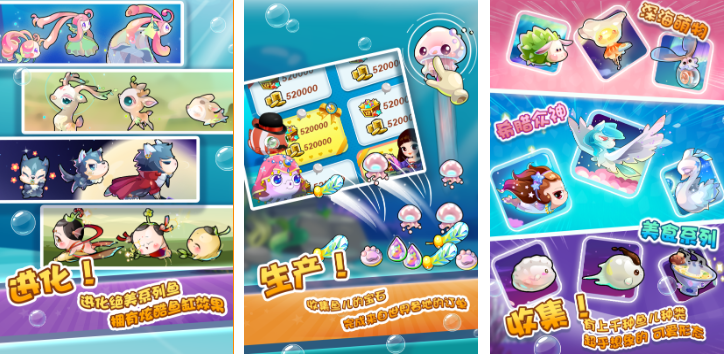 以“合成即进化”为底层逻辑,两两相同鱼类可融合生成更高阶品种,最高支持六段进阶。金币产出采用挂机计时制,每秒稳定增长,叠加建筑升级与技能加成后可达倍率收益。商城提供限定皮肤、稀有鱼卵及场景主题包,宠物系统与鱼类培育深度耦合,例如特定宠物可提升水质净化效率或加快繁殖冷却时间。