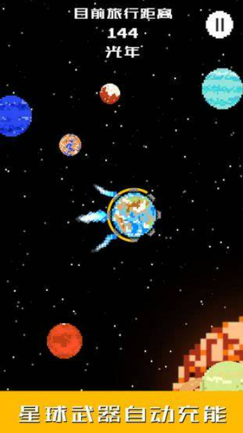 地球流浪闯太空,躲避危险向前冲,像素风格很可爱,休闲时光能放松,手指一动就能玩,碎片时间不浪费,游戏以太空旅行为背景,玩家需要操控地球在宇宙中前行,躲避陨石群等天体威胁,突破积分目标解锁新宇宙场景,游戏采用像素风格画面,操作简单,只需拇指控制地球转向,加速或减速,设有多种难度关卡和全球排行榜,碎片化时间就能体验,宇宙冒险无边界。