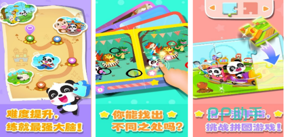 宝宝巴士创作出的这款游戏,专注于让孩子们的思维能力以及动手能力变得越来越强。其中有不同的难度等大家挑选,比如通过逐渐闯关的方式就可以完成拼图任务,用手指滑动屏幕就可以完成拼图。其次还有以找不同玩法为核心的,通过仔细观察就能寻找到其中的不同之处。