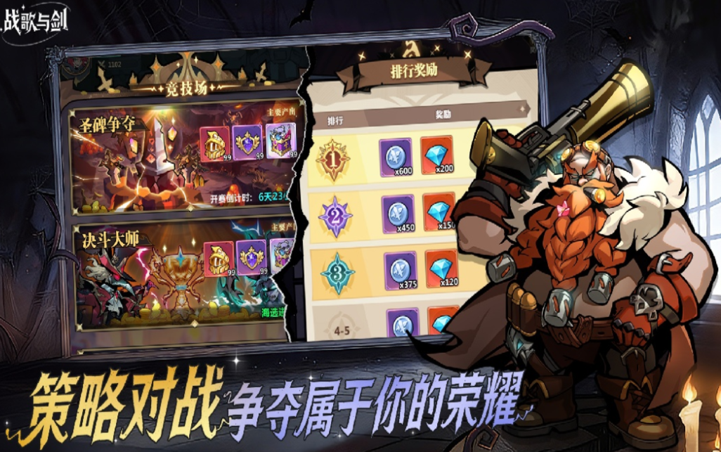 如果你喜欢玩那种潮流对战主题的魔幻游戏,那下载战歌与剑绝对是很好的选择,这是款拥有轻松放置潮流对战的魔幻神作,开启新手关卡可以获得形形色色的奖励道具,扮演冒险者进入魔幻世界战斗历险更加刺激,圣碑争夺以及决斗模式这些玩法更加硬核,未知的冒险任务等待着列位朋友们参与其中。