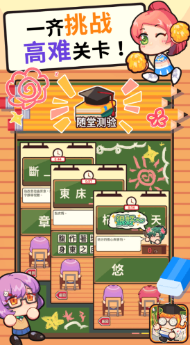 《成语教室》这款游戏的画风是卡通风格的,而且场景就像教室一样,大家就像里面的一名学生,需要完成各种各样的成语任务。游戏里面有很多的成语,有的是首尾相连,有的是共用一个字,大家要做的就是把缺的字全部填对,还有难度更高的填空,专门考验大家汉字和成语的掌握程度,这种玩法非常的锻炼人。