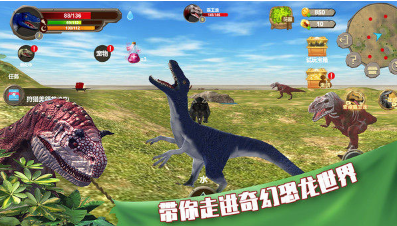 大家在这里需要控制恐龙进行生存挑战,需要到处打猎找食物,一步一步的让恐龙变得更加强大,平时需要仔细的管好它的饥饿和体力等一些情况,这些因素都非常的关键。游戏里能够打的猎物种类非常多,打斗时产生的碰撞效果也很真实,恐龙的大小不同,打架的结果也会差很多,打败猎物之后就跟就可以拿到各种各样的材料,能给恐龙做不同的外观,也能提升它的各项能力。