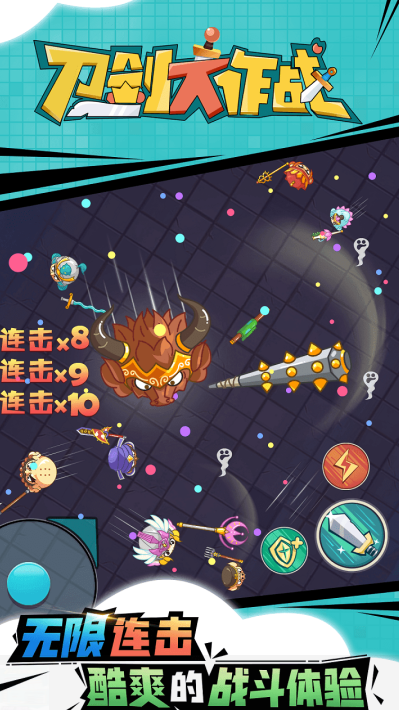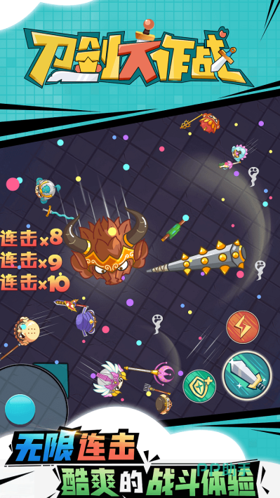 战场上,散落的能量球,决定了角色的成长速度。武器种类不少,短剑攻击频率高,战斧单次伤害大,选择哪种,取决于操作习惯。触控滑动,控制移动方向,点击触发攻击。优先解决弱小对手,积累优势是常见策略,组队时,两人配合能更高效地清理战场。