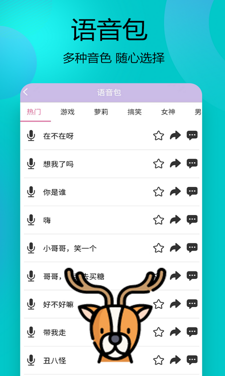 可以在游戏开黑过程当中改变自己发出的声音,即便是男孩子的声音也可以转化为女孩子的声音,转换出的声音富含感情,不会过于机械化,还会认真的分析人声发音的标准规律,让声音变得更加逼真,接近200多种的声色,可随意选择。
