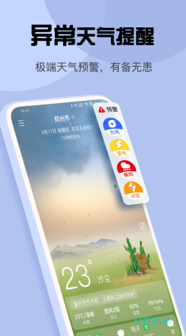会根据天气的整体情况,给客户提供更有用的信息,还有提醒以及建议,比如:生活指南、穿衣指南等等。对于户外活动的人群来说,这款《快天气》软件还很不错,不管是户外工作还是旅游,一键就能够直接查询到天气的详情,在出门的时候也是很好的一个帮手。