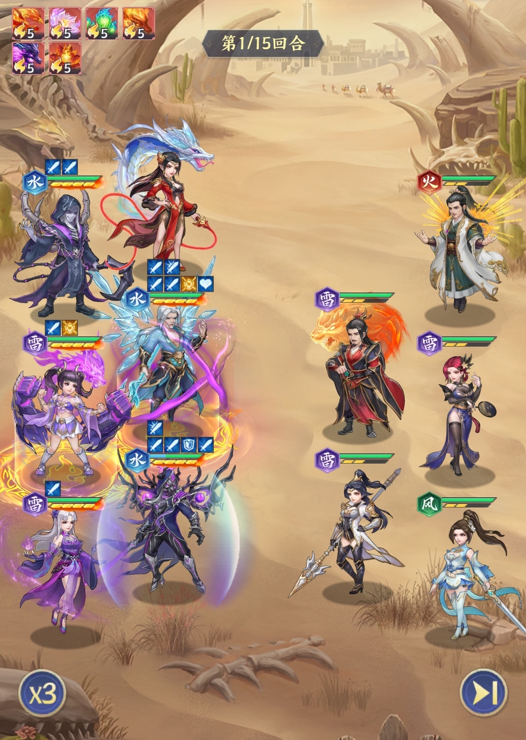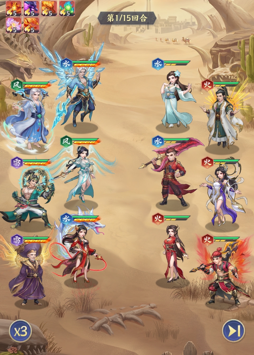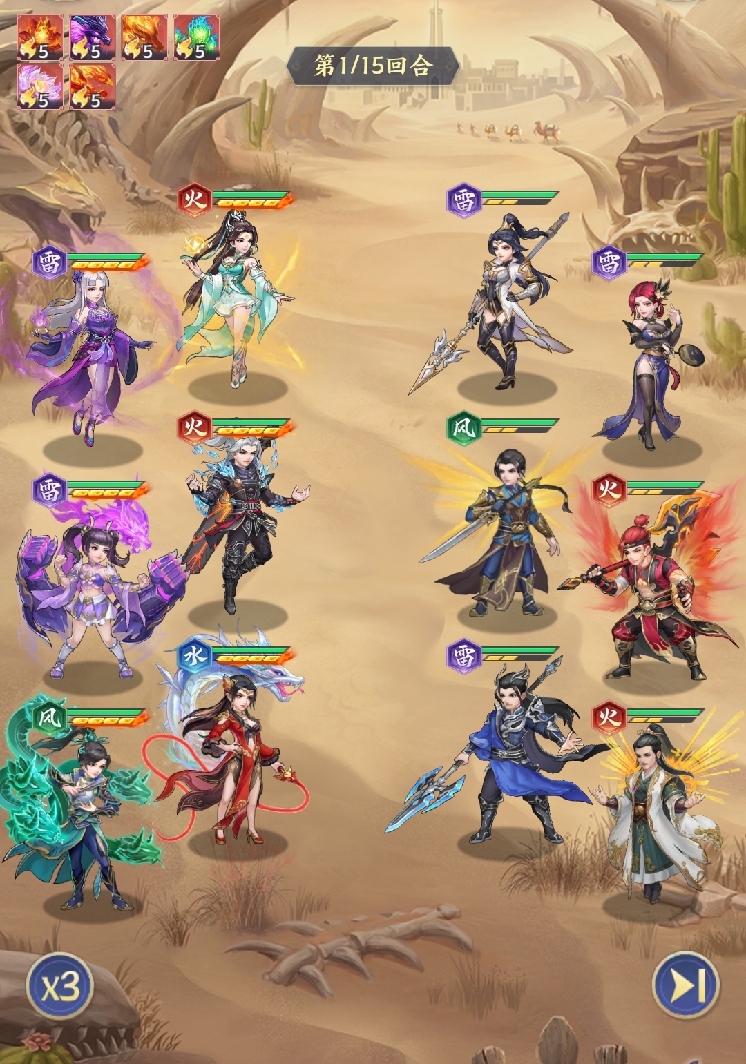斗破苍穹中有不少好用的击杀追击角色,比如美杜莎、云韵等,所以也可将他们组建成残血收割队来使用。搭配时玩家可选美杜莎、海波东、云山、云韵、熊战和苏千的组合,由海波东先手进攻,利用自己的高群上压低对手的血量,方便2、3号位的云韵和美杜莎来进行收割,并将高血量敌人交给4号位的云山进行兜底。同时,熊战和苏千都有较强的回血能力,可力保队友不会被击败,且熊战还能为队伍补足伤害。