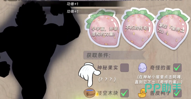 最后的就是神秘的果实,很多的玩家都会因此而卡关。这一个神秘的果实只有在大灰狼关卡才会产出,位置是比较隐蔽的。在进入到这一个关卡之后,大家都会在近距离视觉角度下,要想发现果实,那还是会有一些难度。建议点击一下屏幕上的视觉拉远按钮,只要把镜头调整到一个远距离的模式,马上就可以看到这个神秘果实的身影。外观和之前收集的物品就会有明显的区别,相对来说辨识度还是比较高的,只需要直接点击收取即可。
