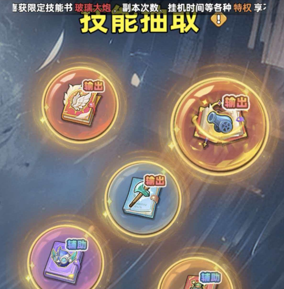 技能书也会分成三个不同的种类,刚好可以对应每一个英雄的定位输出。辅助位置应该优先吸血,坦度角色需要注重于防御,输出型英雄就应该配暴击。品质分级更加的直观,金红色神话是天花板,往下就是红色神话级,紫色史诗级,还有橙色传说级。品质越高,那就意味着技能效果属性更加的离谱,选对类型,然后拼一个品质,才能不浪费资源。想要迅速的解锁技能书,两条路走稳就可以事半功倍,核心的途径就是技能召唤券抽取。