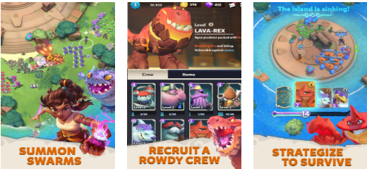 Floodrush也是包含着出来对战元素的上帝视角RTS手游,最多可以八人参与合作对战让气氛更为热闹,探索玩法的加持可以让大家爱轻松进入卡通梦幻世界冒险,香蕉手雷以及朗姆酒炸弹这些奇葩道具搞笑纷呈,还设有不同级别的卡牌可以抽取并提升实力,地图上随机刷新的众多buff道具也是亮点。
