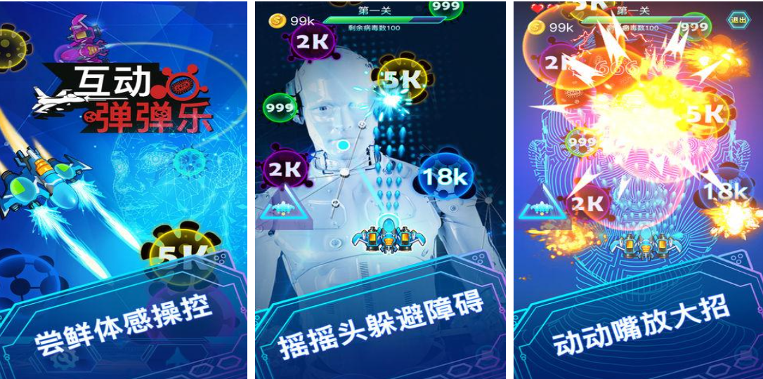互动弹弹乐主打体感操控,支持重力倾斜与语音指令双模输入。玩家可倾斜设备控制战机航向,张口触发技能释放,弹幕密度与音画同步率经过精细调校,大幅增强临场代入感,是少有的将多模态交互融入核心玩法的射击类作品。